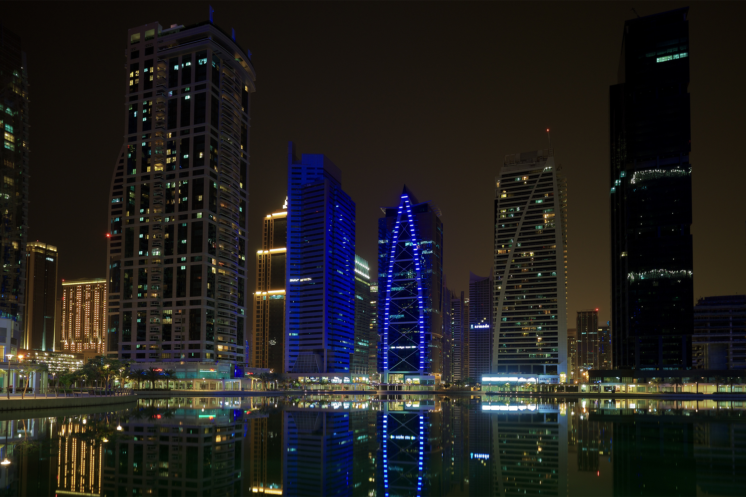 Walking tour of Jumeirah Lake Towers at night (View #1)